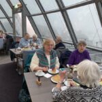 Die Anmeldungen gingen ein und der Seniorenbeirat musste wegen der hohen Nachfrage noch Plätze nachordern. Trotz trüben Wetters kamen am Mittwoch, dem 11. Februar um 15.00 Uhr, 40 gutgelaunte Senioren im Augustinum zusammen. Teilnehmerinnen mit Rollator und Weitere, durften einen extra Fahrstuhl, der bis direkt in die Elbwarte führte, benutzen. Im Café angekommen, wurde es mit seiner eindrucksvollen Glaskuppel bestaunt und obwohl der Blick von oben den Hafen leider nur erahnen ließ, genossen die Ehemaligen bei Kaffee, Torte und netten Gesprächen den Nachmittag in geselliger Runde.